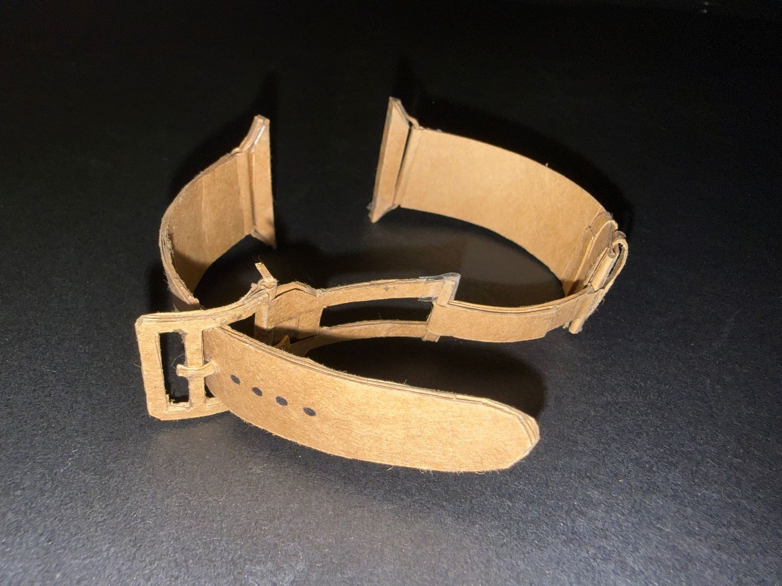 모형 제작 의도가 스트랩의 다양한 형상을 만들어보고 구상하기 위함에 그치는 것은 아니다. 초반의 관찰 태도는 오로지 작동 원리에 집중했기 때문에 경첩의 작동 방식을 그대로 구현하여 착용이 가능하다.