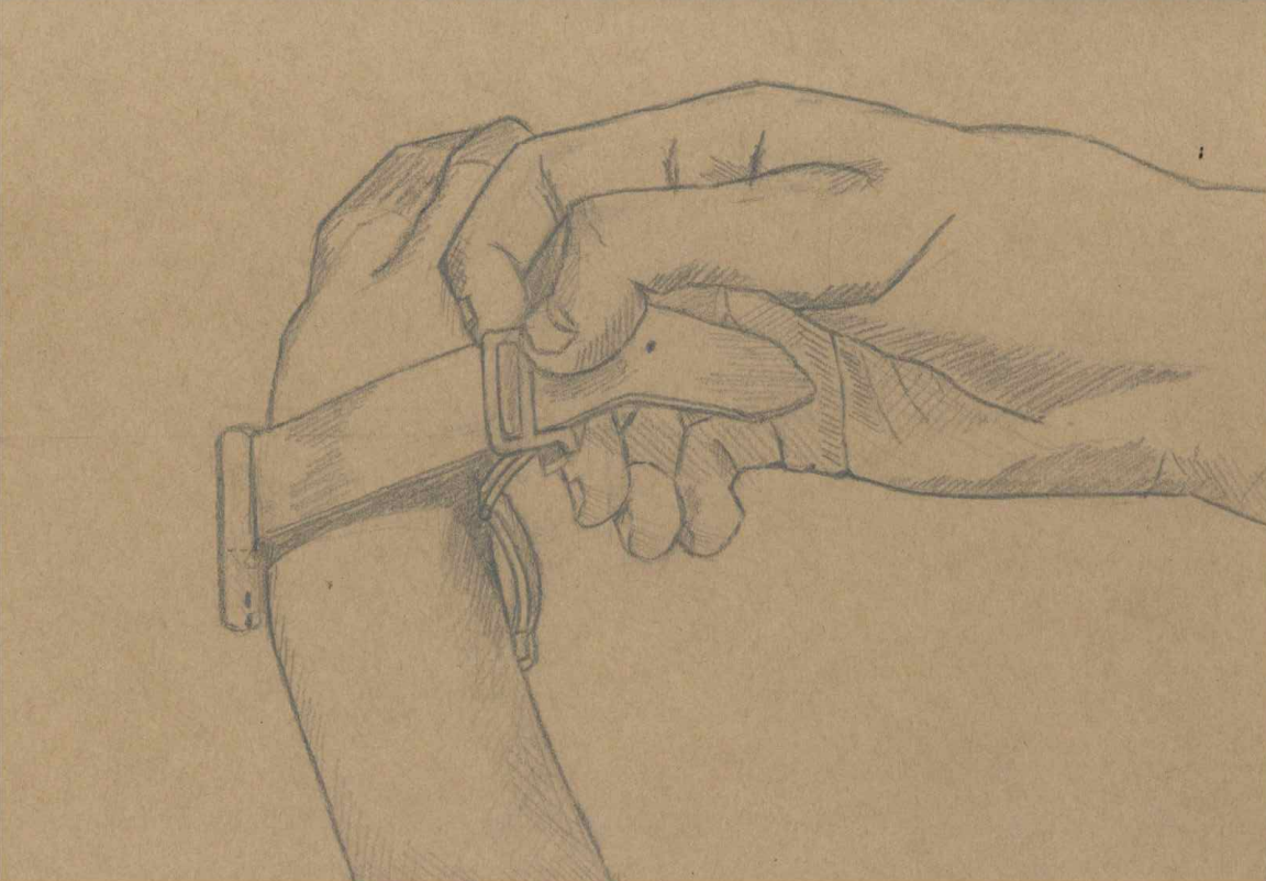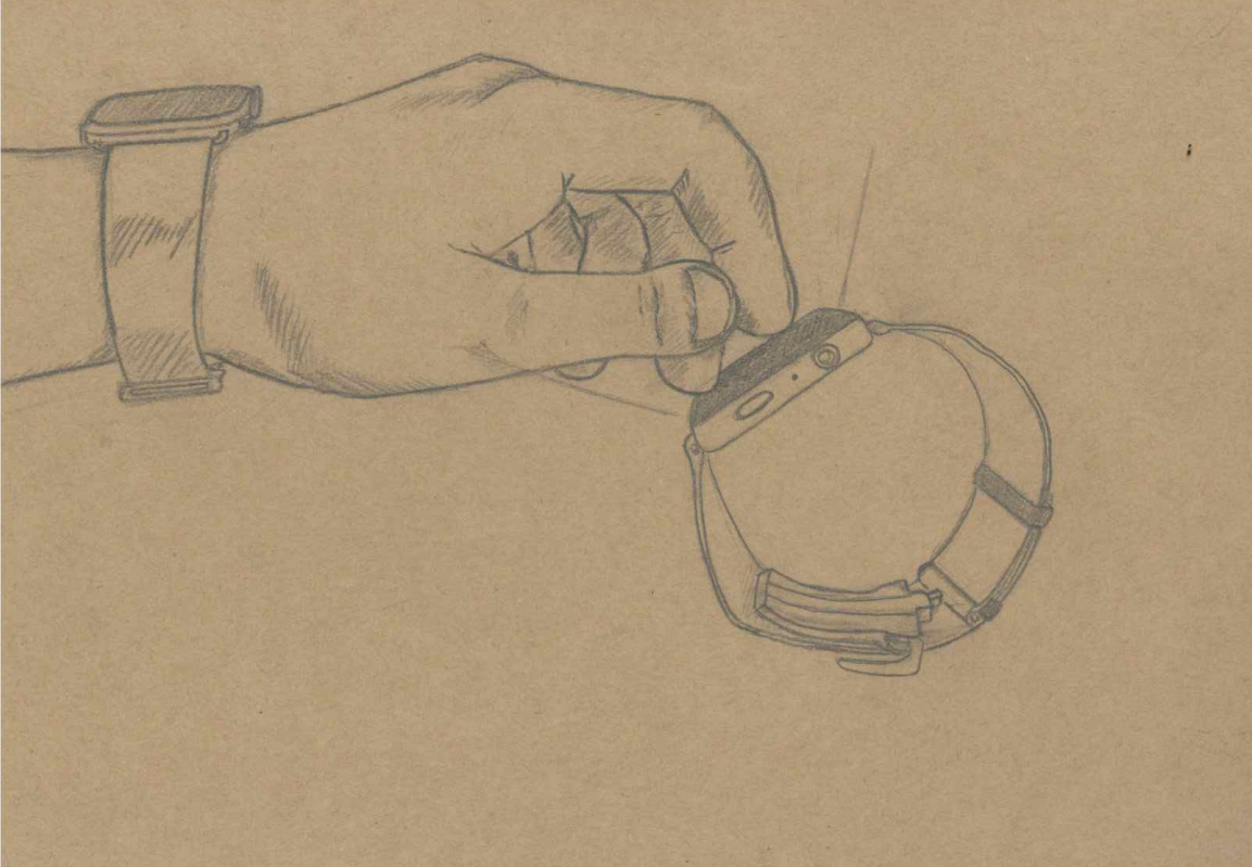 이미 애플워치를 착용한 모습을 관찰한 후, 나는 평소 신경쓰지 않았던 '애플워치의 탈착 과정'을 새롭게 다뤄보고 싶었다. 애플워치를 착용하는 과정을 순간적으로 포착해 스케치했고 생각해본 적 없는 장면을 마주할 수 있었다.