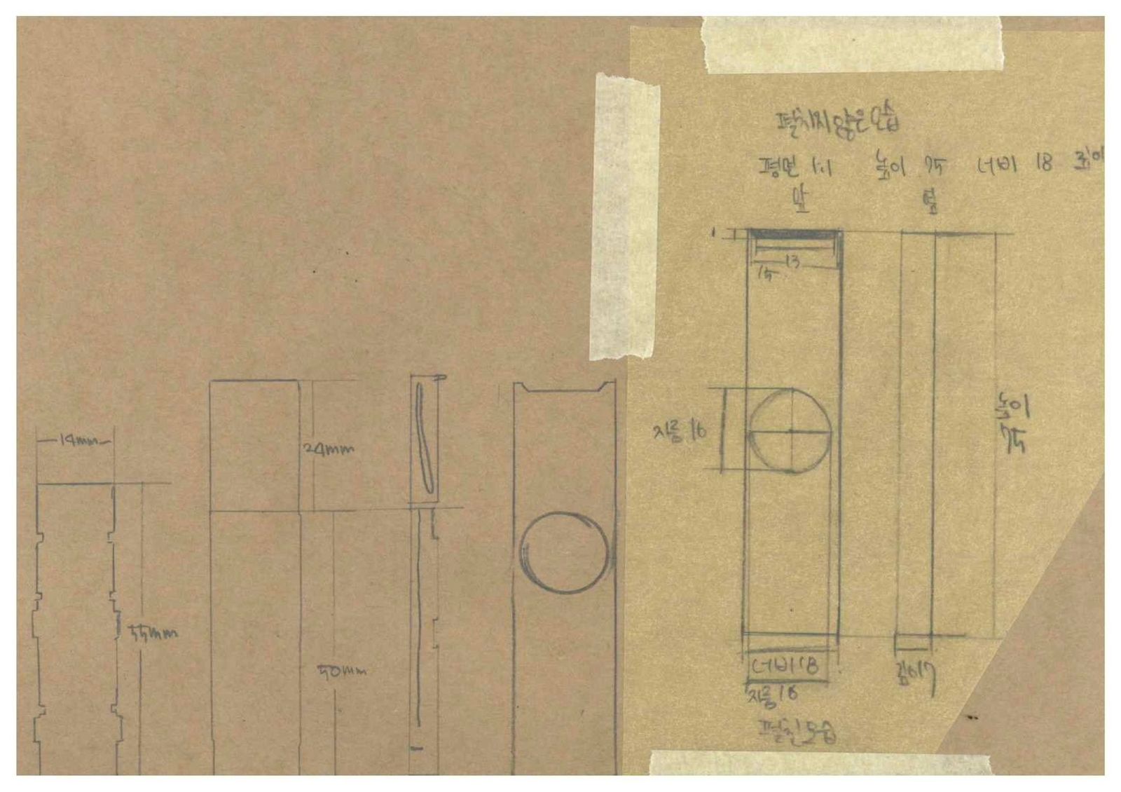 텀블러에서는 뚜껑이 사선으로 열리는 형태를 지닌 텀블러여서 열리는 길을 상상하며 길의 공간을 표현하고자 하였고 샤프와 샤프심통은 안과 경계의 치수와 모습을 표현하고자 하였다.