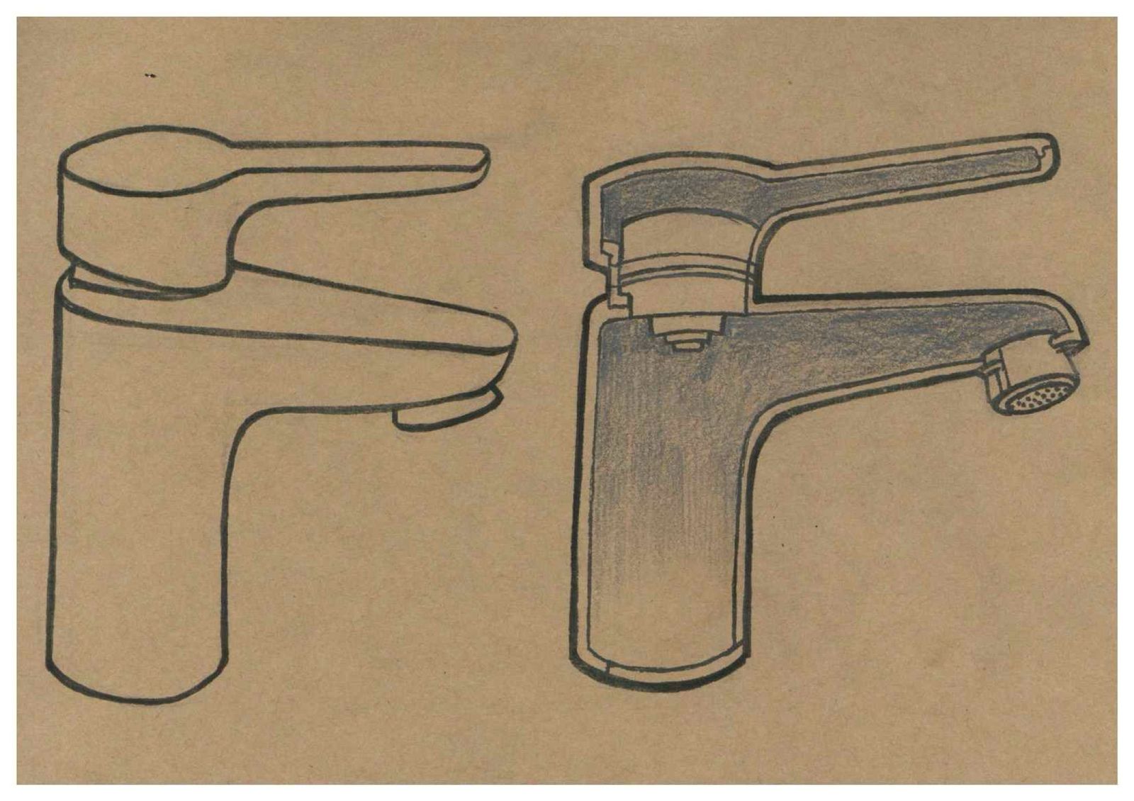 우리는 수도꼭지를 단순한 기능적 도구로 인식해왔지만, 공간의 관점에서 바라보는 순간 전혀 다른 요소들이 드러난다고 생각했다. 그래서 외형을 단순화해 경계를 따라 그려보았고, 이를 통해 수도꼭지를 부피와 경계를 가진 하나의 공간으로 인식하게 되었다. 더 나아가 내부를 드러내어 관찰하면서, 보이지 않던 구조(카트리지)의 존재까지 확인할 수 있었다.