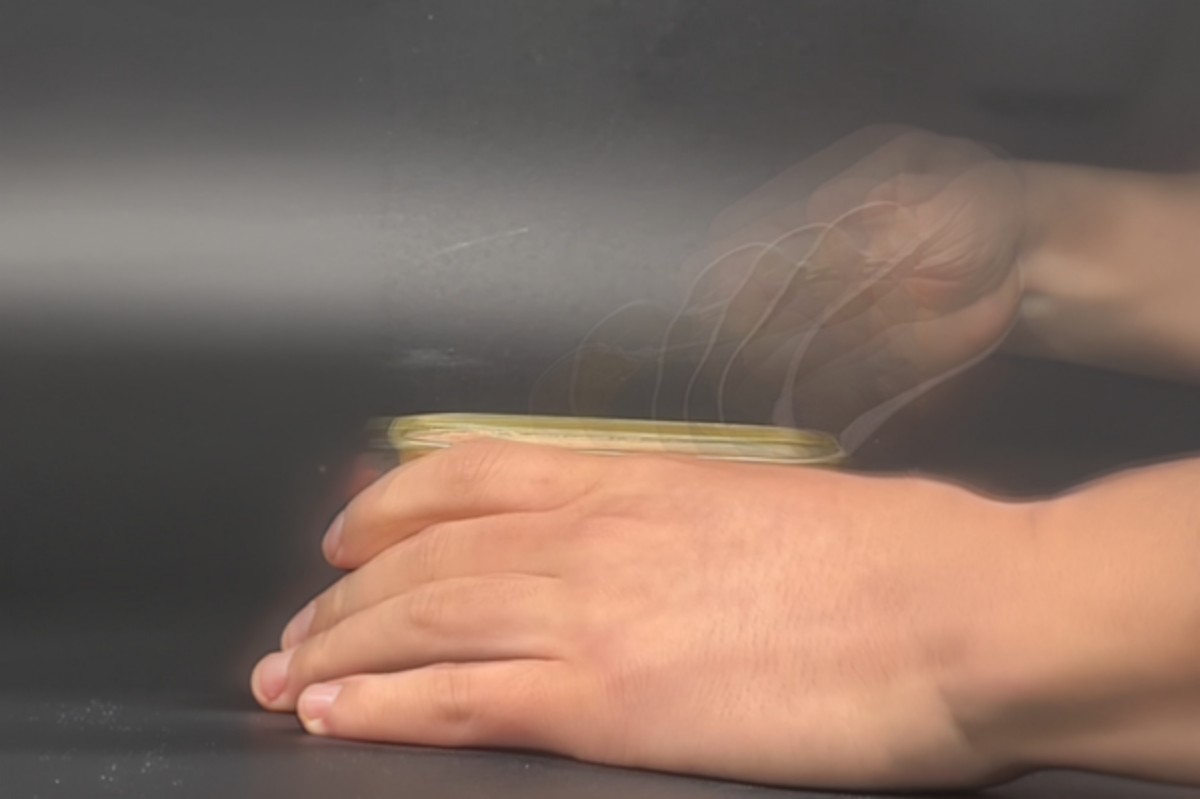 포토샵을 활용해 캔을 따는 연속적인 움직임을 겹쳐 표현함으로써, 손의 동적 행위가 사물의 내부 공간을 열어가는 찰나의 과정을 시각적으로 새롭게 발견하였다.