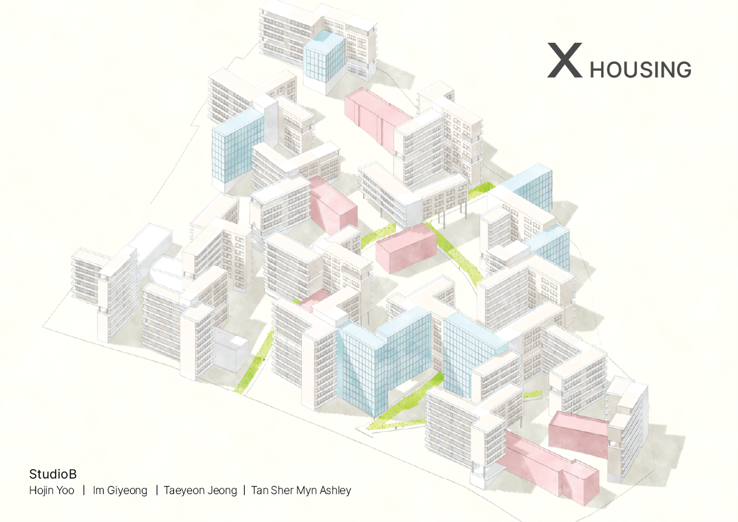 We intended 2types of pedestrian path, one on the ground and one in the building. Each building has a void to ensure outdoor access on the upper floors. The network connecting these voids creates new pedestrian paths and resident communication spaces that are independent of the topography.