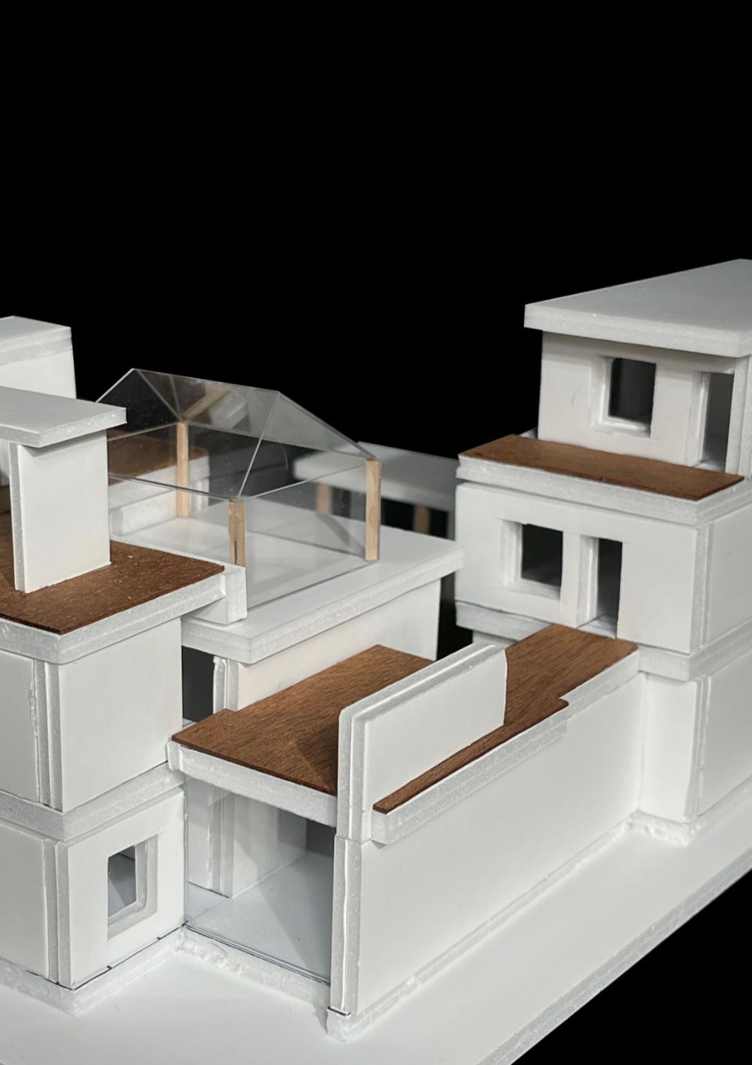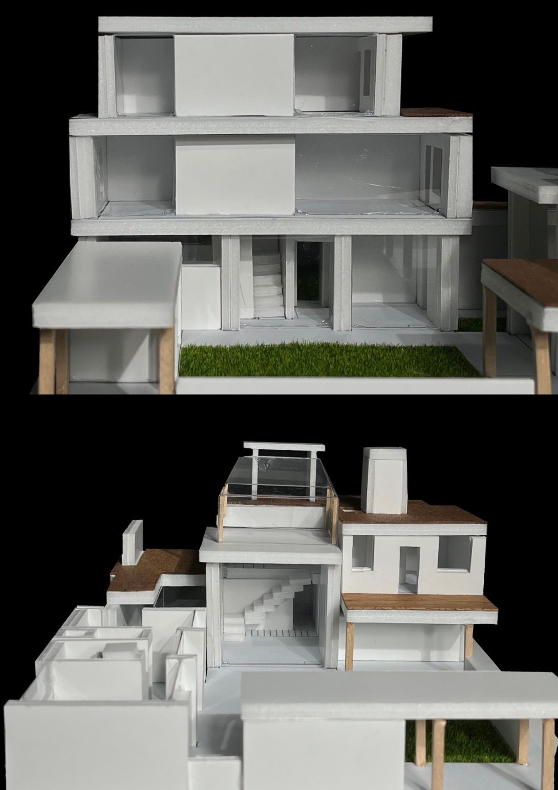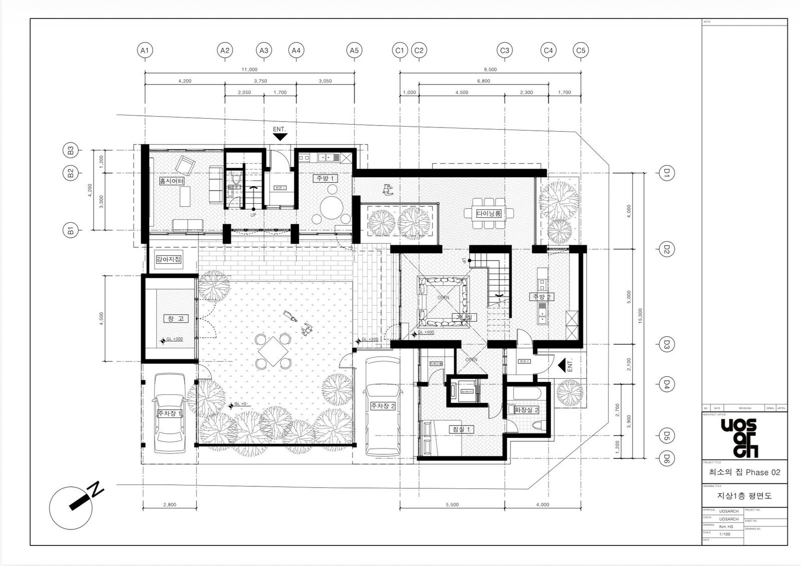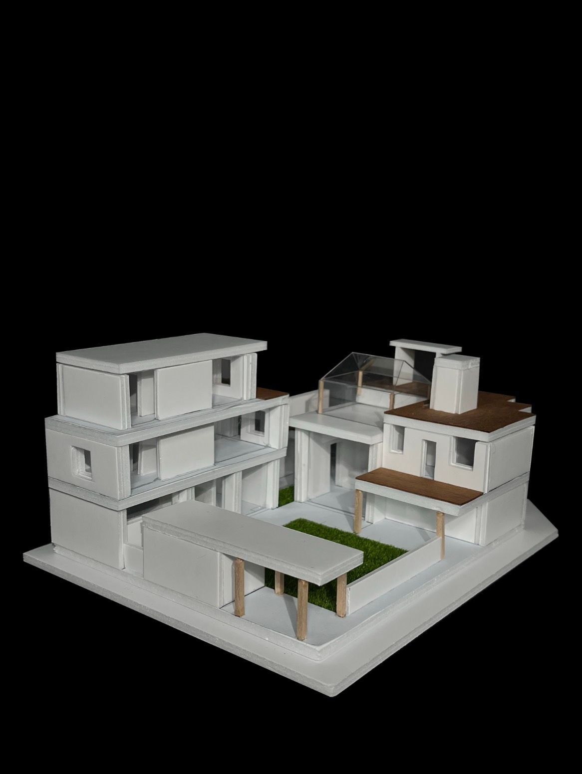 내가 설계한 주택의 콘셉트가 되었던 모리야마 하우스는 여러 명의 정주인이 각자의 공간을 점유하면서도, 마당이라는 공간을 폭넓게 공유할 수 있는 주택이었다. 난 이러한 모리야마 하우스의 콘셉트를 유지하되, 독립된 박스 형태로 분리되어 있던 공간들을 쌓아내거나 붙여 내어 공간의 효율성을 높이는, 더 현실적인 형태의 주택을 설계하고자 하였다. 이를 위해 3대에 걸친 사촌 지간의 정주인 4명을 설정하고, 이를 다시 3개의 가구로 분리하여 3개의 거주 공간과 다양한 공용 공간이 엮여 있는 주택을 설계하였다.