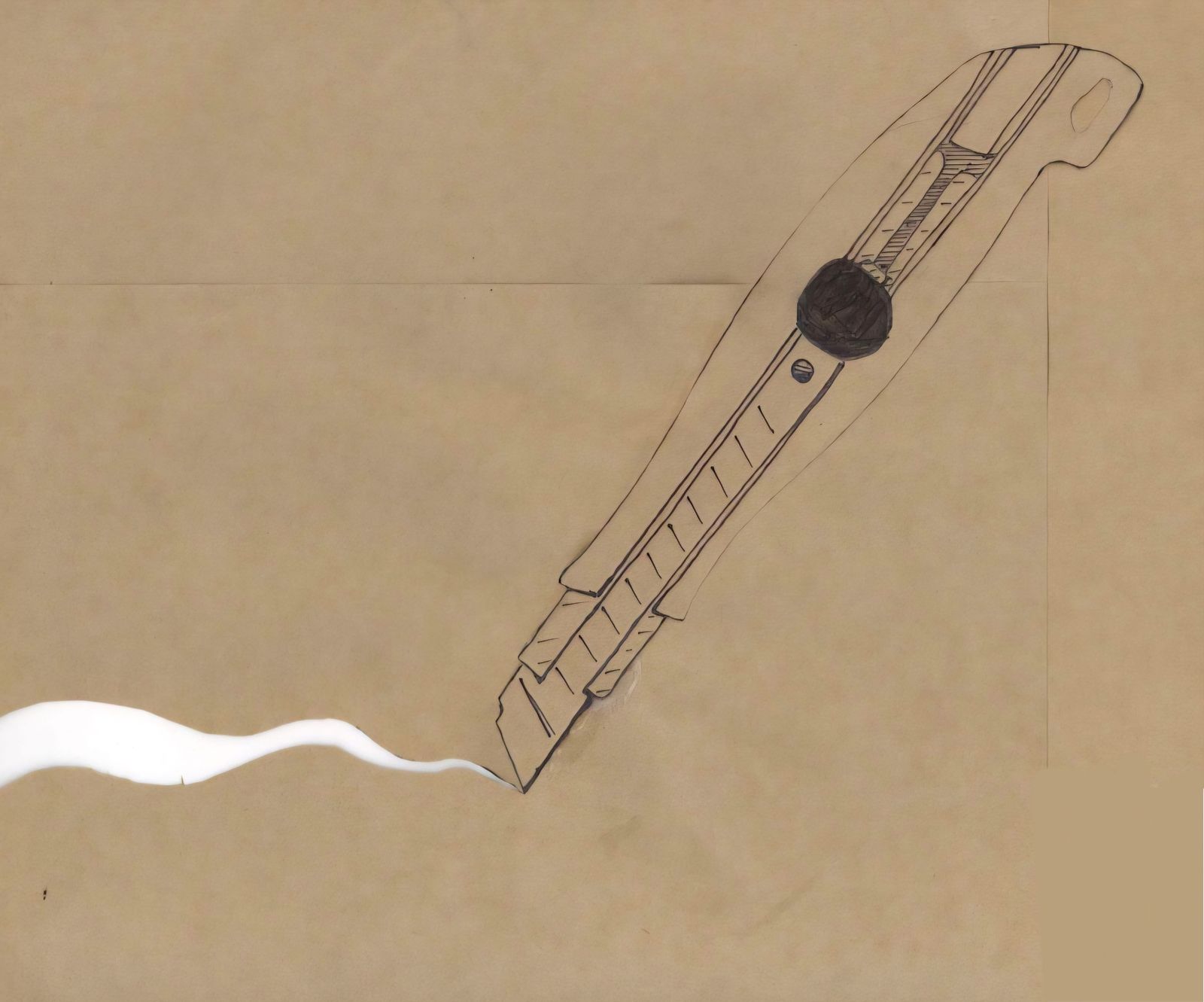 커터칼 종이 모형을 제작할 때 커터칼로 종이를 잘라 커터칼을 만들고 있는 내 모습이 아이러니하다고 느껴 똑같이 종이 그림이 종이를 자르고 있는 모습으로 표현하였다.