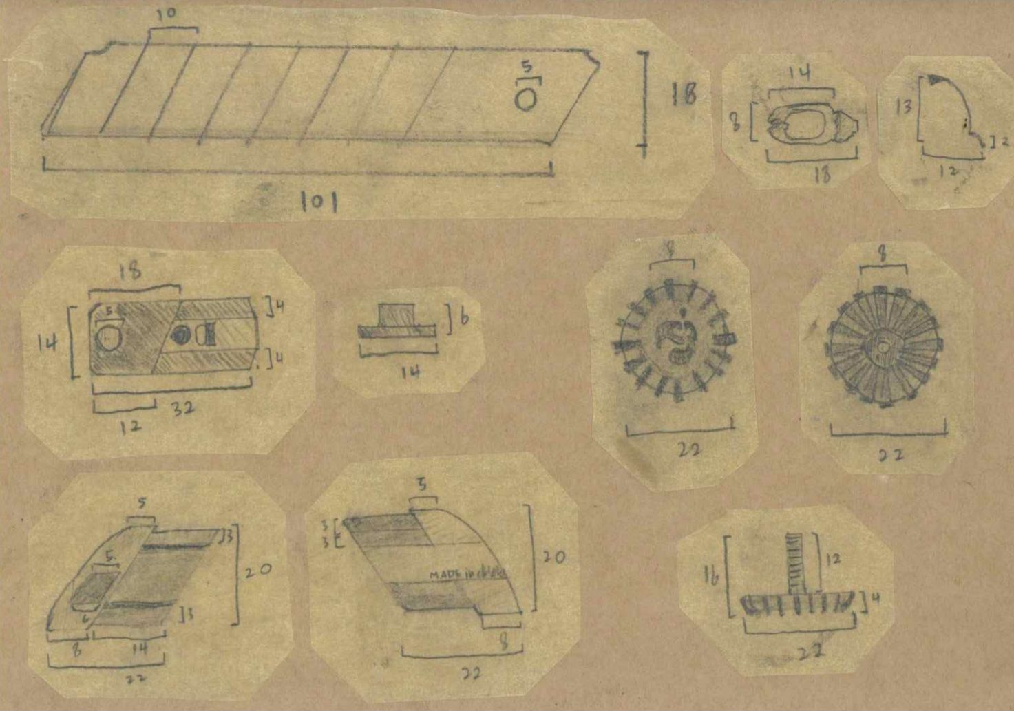 첫번째 단계에선 커터칼을 전부 분해한 후 부품들을 여러 각도에서 그리고 수치를 재었다.