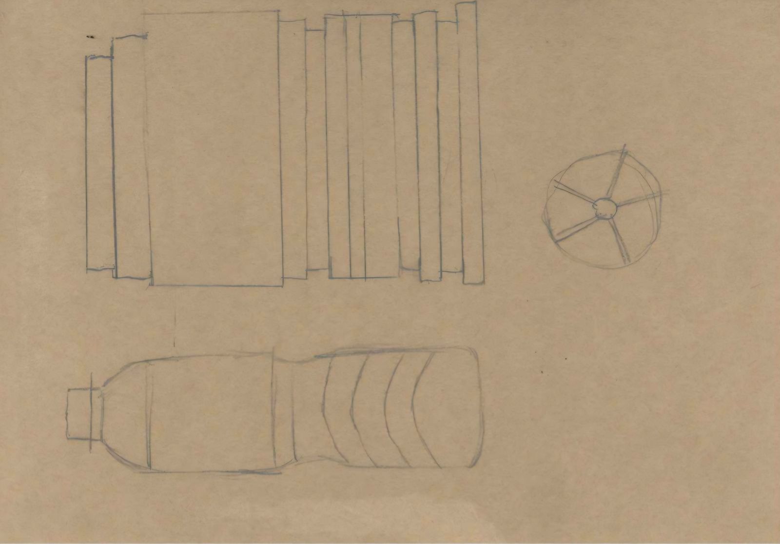 삼다수 물병 모형을 만들면서 크게 느낀 것이 종이의 두께가 모형에 큰 영향을 준다는 것이였다. 종이의 두께 때문에 뚜껑이 물병 입구에 들어가지 않아 2번정도 새로 만든 일을 겪고, 나는 이 두께를 모형을 만드는데 오히려 이용해보고 싶다는 생각을 하였다. 그래서 원통형 생수병인 아이시스를 만들어보았고, 종이의 두께로 홈을 표현해 보았지만 종이 한장의 두께로는 표현이 잘 안되었다.