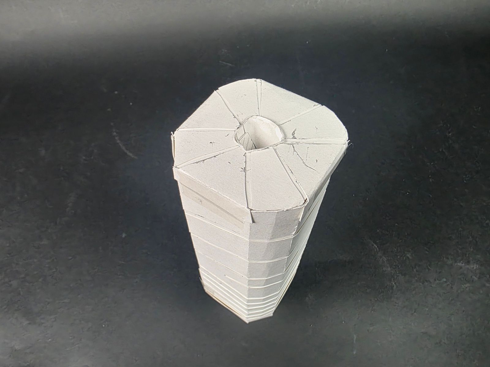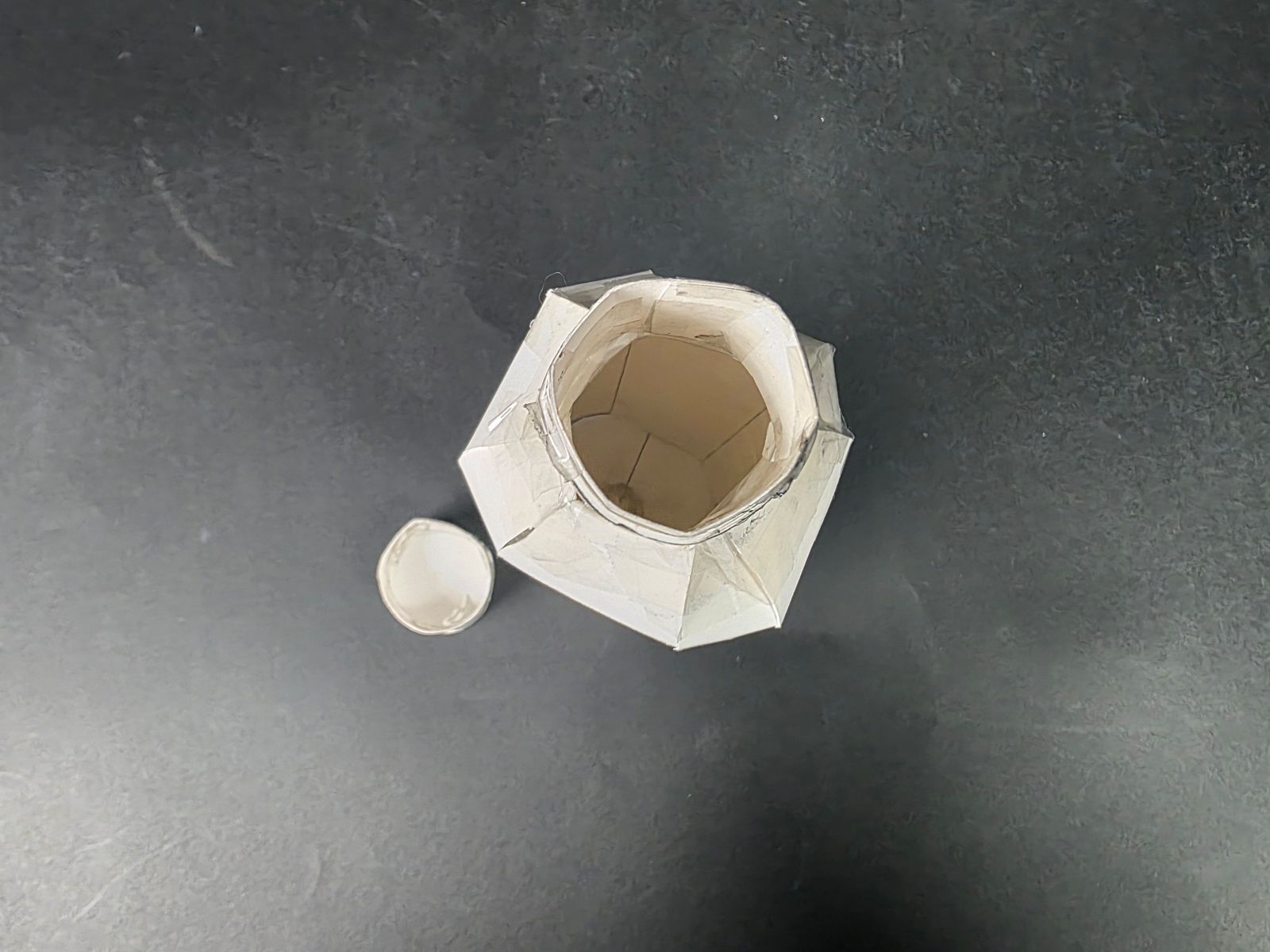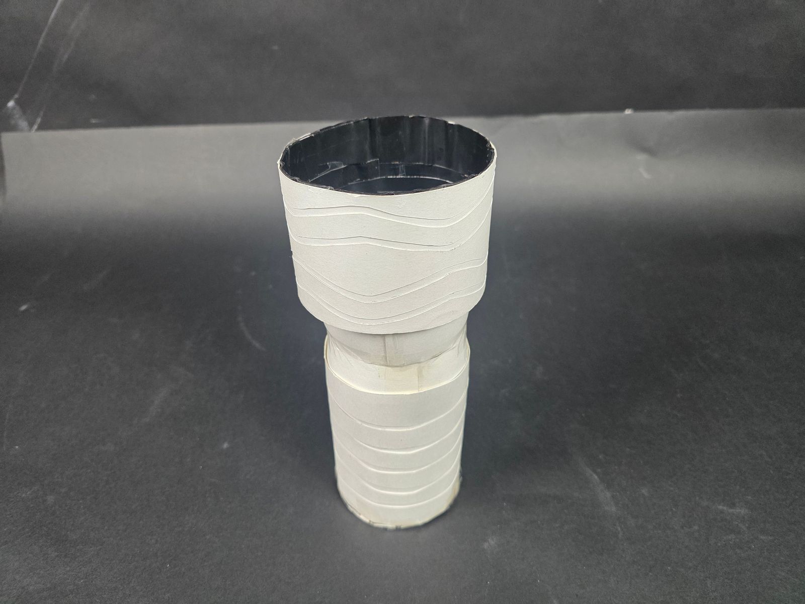 마지막으로 뚜껑은 나선형 돌기 부분에 가늘고 긴 도화지를 4장씩 붙여 두께를 표현하니 내구성도 좋아지고, 조잡함도 조금 개선되었다.