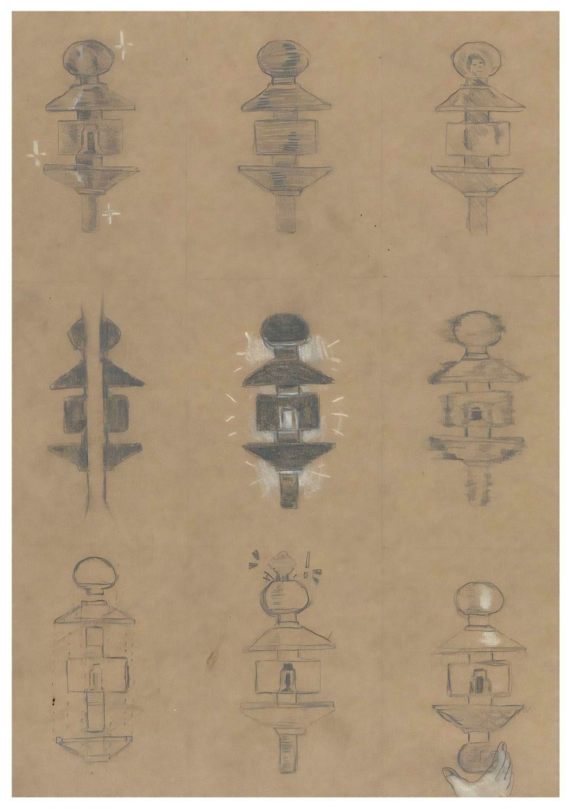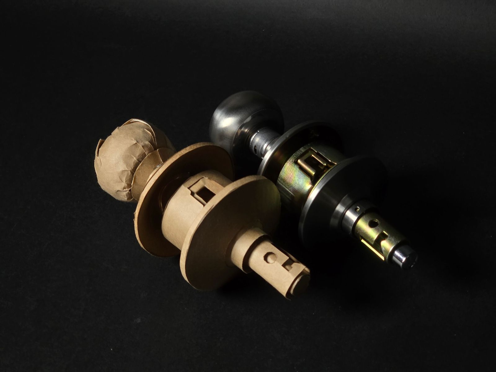적층식, 전개도, 종이접기 등 여러 방법을 시도했지만 손에 닿는 손잡이의 굴곡과 사이즈를 정확히 표현하진 못했다. 마지막으로 시도했던 방법인 적신 종이를 말려 성형하는 방식이 가장 만족스럽게 나와 최종 모형에서 해당 방식을 채택했다