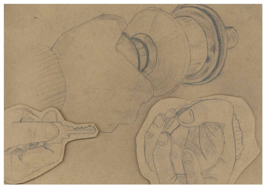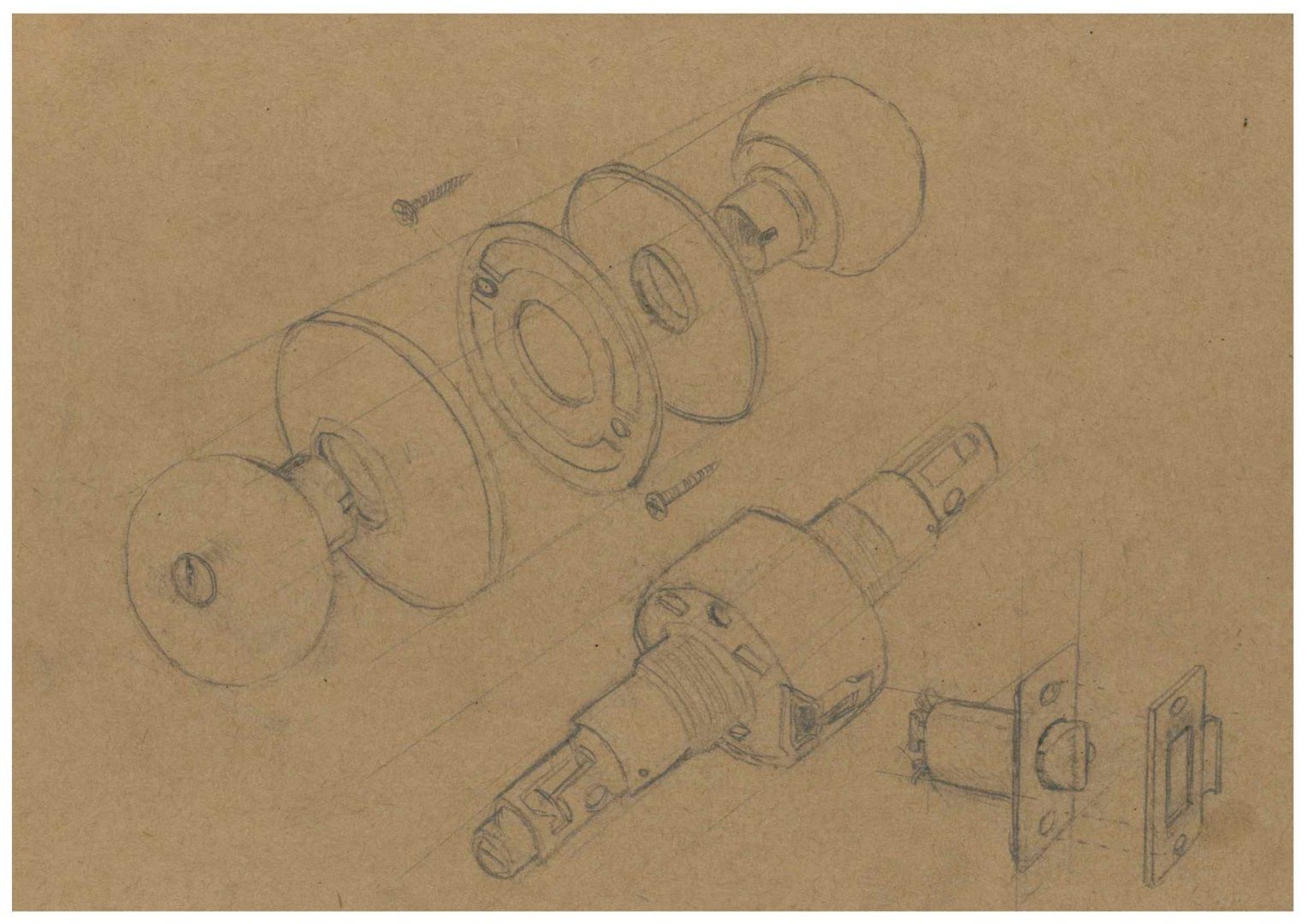 내 손과의 관계를 중점으로 나의 시선과 문고리의 시선에서의 나의 손을 각각 그려보며 내가 문을 열 때 내 손이 어떤 모양인지 확인하였다. 또한 포토샵 이미지 중첩을 통해 내 손이 문손잡이에 어떻게, 어떤 속도로 접근해 닿게 되는지 보았다.