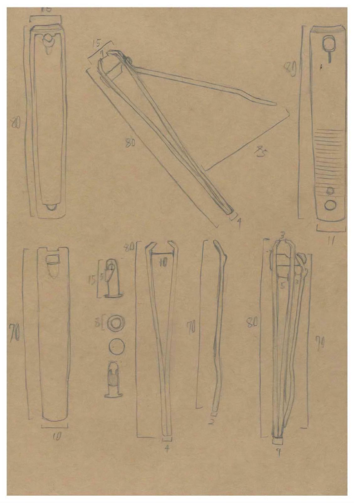 또한 실제로 손으로 사용하는 모습을 1:1로 스케치하며 손잡이 부분이 넓은 반경으로 움직이는 반면 날 부분은 매우 미세하게 움직이며 강한 힘을 만들어낸다는 점을 발견했다.