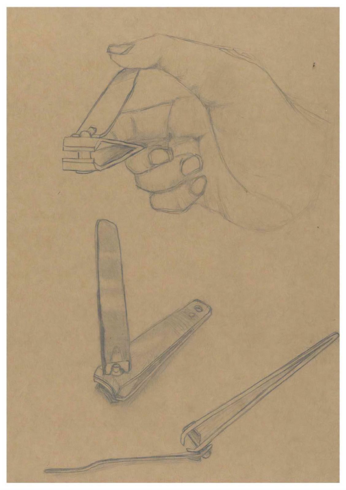 손톱깎이의 작동 과정을 여러 단계로 나누어 스케치하였다.