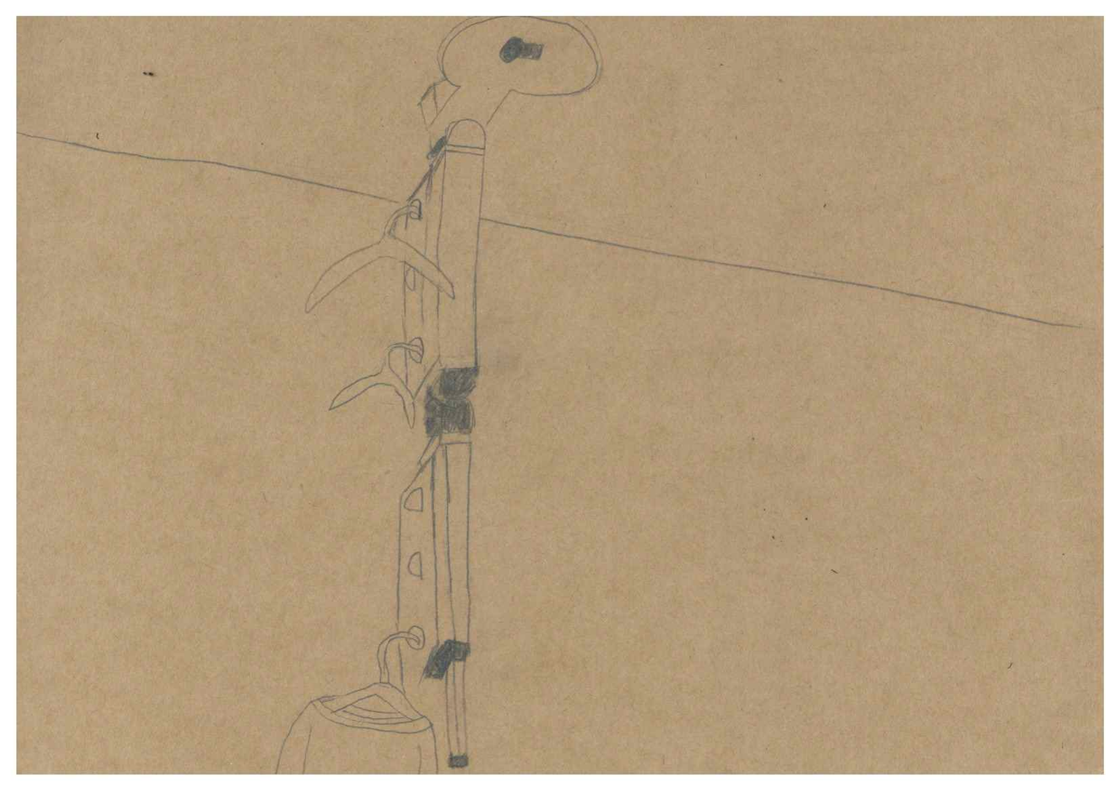 처음에는 내가 원하는 방식으로 공간을 활용할 수 있게 해주는 사물의 특성에 주목했다. 기존과는 다르게 벽이 아닌 천장이라는 공간을 활용해 빨래 건조대를 사용해 보면 재미있을 것 같아 그린 스케치이다.