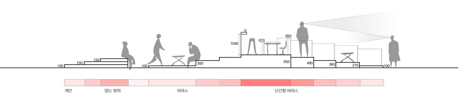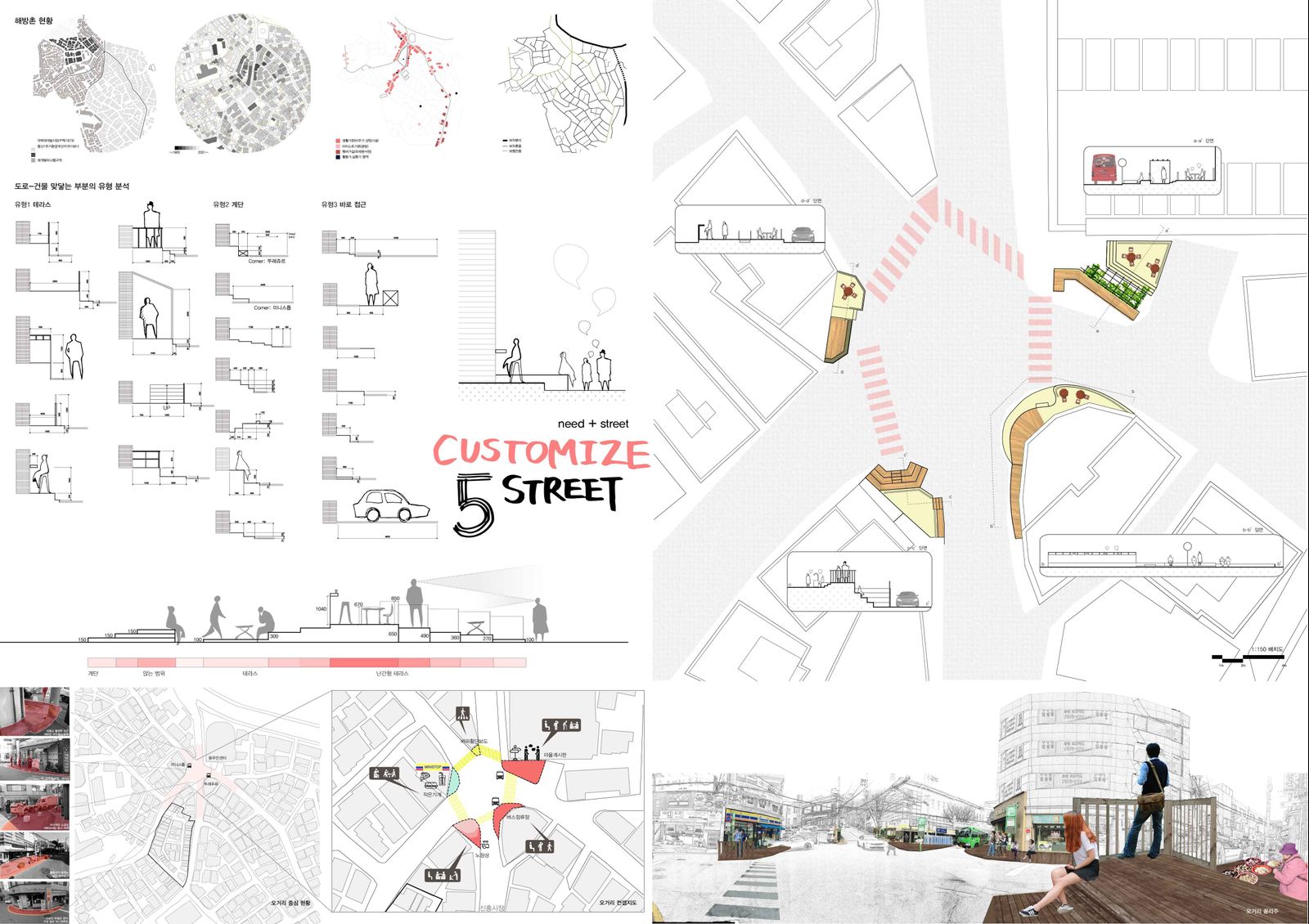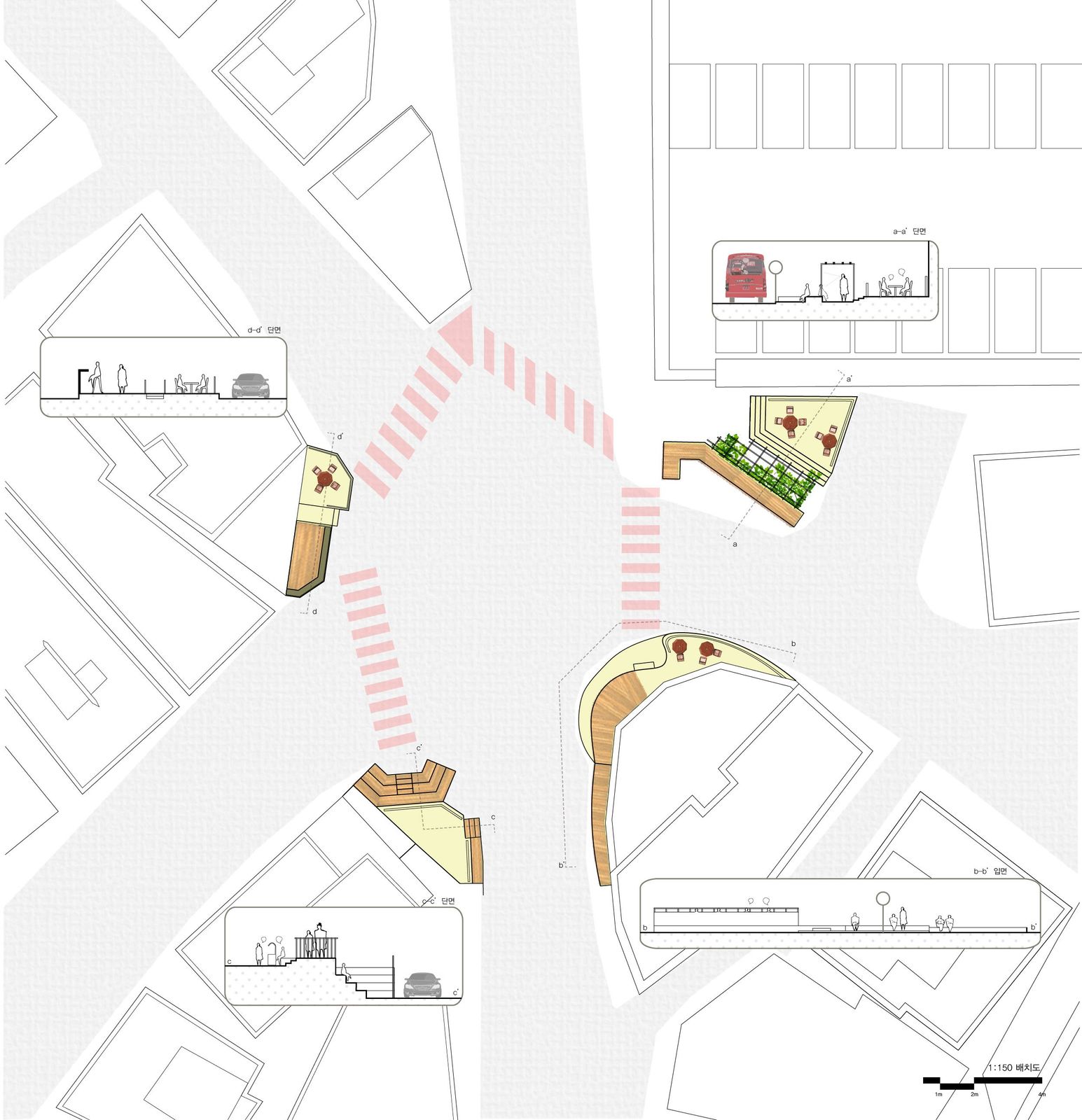 해방촌은 현재 소위 말하는 핫플레이스라 불리우지만 오거리, 윗동네는 사뭇다르다. 오거리와 신흥시장일대는 재개발에서 소외된 채 그 모습을 간직해 왔고 우리는 주민들의 필요한 공간과 해방촌이 간직한 물리적인 환경을 결합하여 오거리를 디자인을 고려하였다. 물리적인 환경으로서 도로와 건물이 맞닿는 부분을 분석하였고 분석결과 테라스, 계단, 바로접근형으로 유형화가 이루어졌으며 그에 따라 좋은 공간과 좋지않은 공간들을 찾아내었다. 차량과 보행자의 통행이 맞물려 발생하는 오거리에서 코너에 해당하는 각각의 공간을 분석하여 오거리 디자인을 제시하였다.