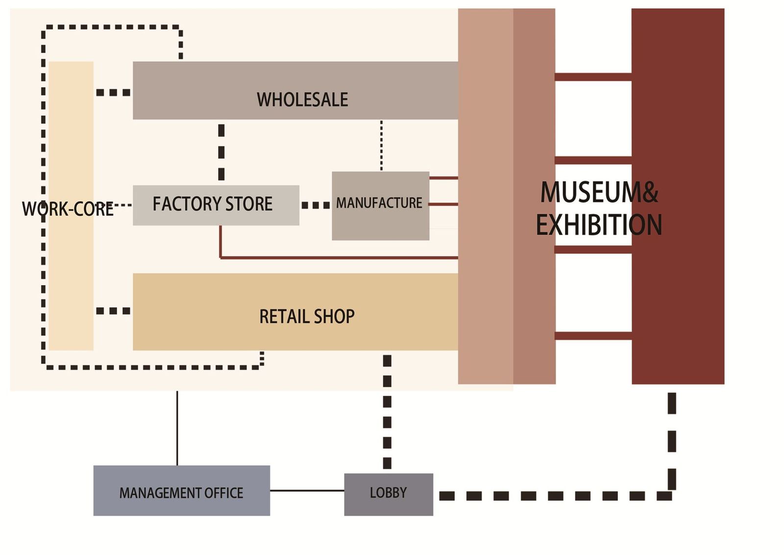 1.I think it better to have a museum and exhibition in this renovation.Because Pyounghwa market could be regarded as origin of the fashion of Dongdaemun area.Using original building to tell the historical story about this area is the basic what I thought.And I divided it into two parts.One is for working and one for cultural function.
